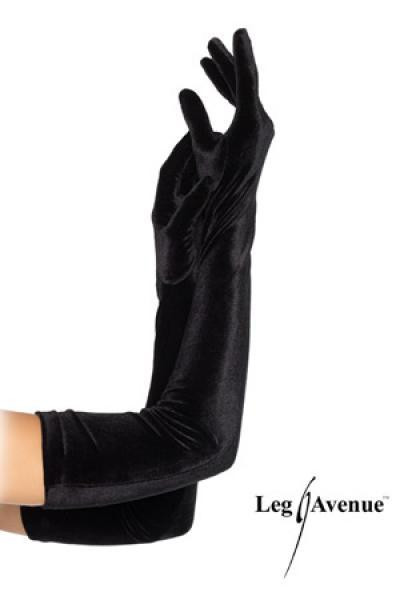 Fekete hosszú elasztikus bársony kesztyű. Méret: S/L egy méret