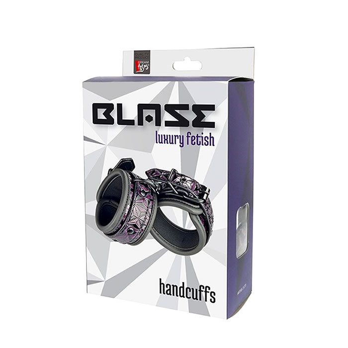 Stílusos kézi bilincsek bőr megjelenésű anyagból, elegáns és fényes fekete és lila dombornyomott kialakítással. Mindegyik fekete nikkelmentes fém részekkel rendelkezik, és puha, de tartós neoprén anyaggal vannak bélelve a szexi és kényelmes játék érdekében. A csuklómandzsetta teljesen állítható az egyszerű övstílusú csatokkal. 10 cm hosszú lánc tartja össze a mandzsettát. A lánc egyik oldalán muskéta horoggal levehető. Lehetőség van több lánc vagy kötélkampó, vagy extra súlyok rögzítésére.