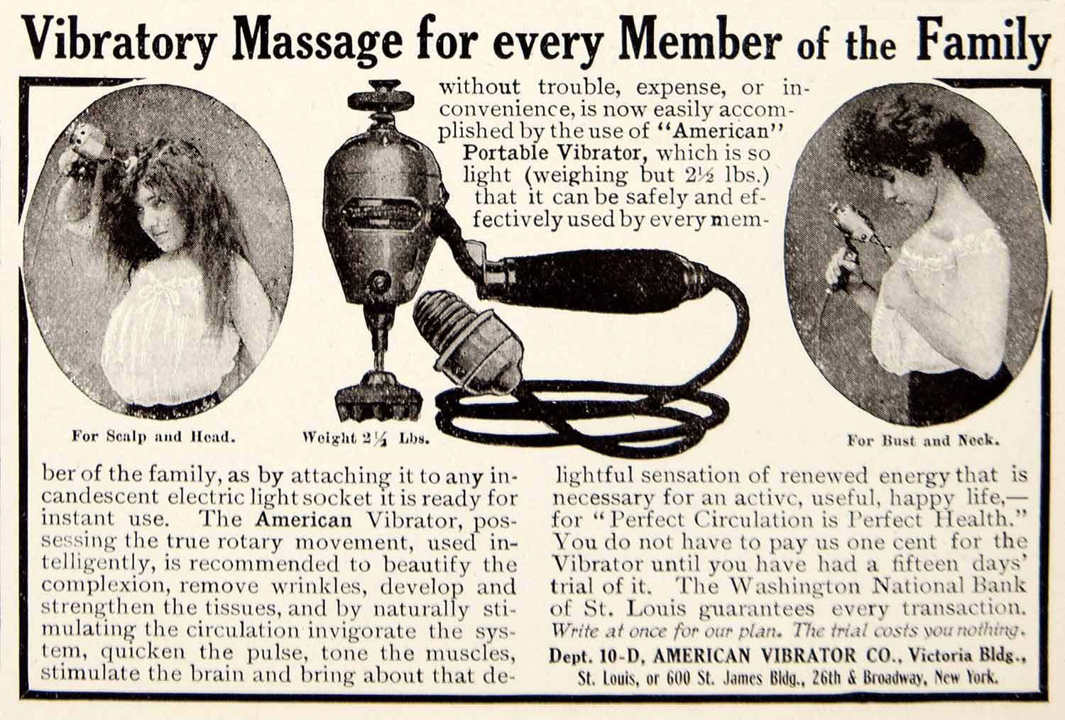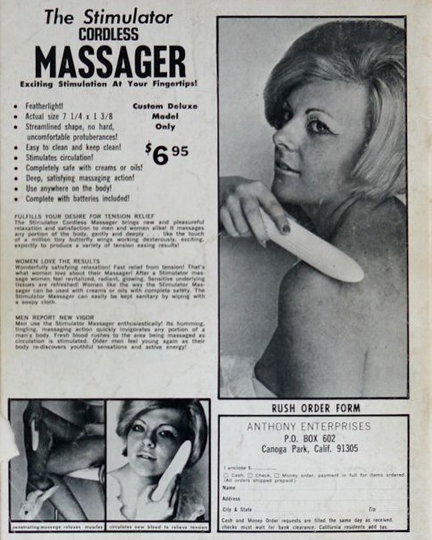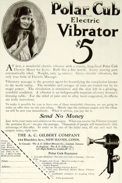 A következő nagyjából 20 évben a vibrátor – vagy ahogy nevezték, „masszírozó” – nagy tiszteletreméltó népszerűségnek örvendett, más ártalmatlan háztartási készülékekkel együtt hirdették olyan magazinok előkelő oldalain, mint a Woman’s Home Companion , olyan szlogenek alatt, amelyek „Milyen elbűvölő társakként” írták le őket, és azt ígérték: „A fiatalság minden öröme… lüktetni fog benned”. 1909-ben a Good Housekeeping „kipróbált és bevált” ismertetőt közölt a különböző modellekről, míg a Woman’s Own 1906-os számában megjelent hirdetés biztosította az olvasókat: „Gyorsabban, egyenletesebben és mélyebben alkalmazható, mint kézzel, és olyan sokáig, ameddig csak kívánatos.