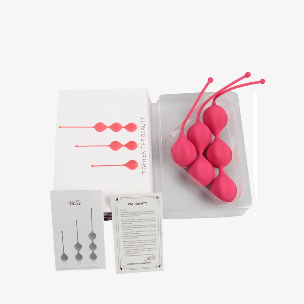 Cotoxo Belle mélyizom erősítő gésagolyó szett a hüvelyizmok karbantartásához és az orgazmus készség javításához ideális, tetszés szerint variálható gésagolyó szett, prémium, bőrbarát minőségben! Letisztult formavezetéssel, maximálisan bőr- és környezetbarát anyagok felhasználásával készült, két részes gésagolyó szett, impozáns tárolódobozban és praktikus tasakkal. A szett változatosságot kínál mind méretben, mind formában, mind súlyban, így a kezdő gyakorlatoktól indulva a haladóig tökéletes választás azoknak, akik akár a szülés után edzeni szeretnék intim izmaikat, vagy egyszerűen csak jobb orgazmuskészséget szeretnének elérni a tréningnek köszönhetően.
