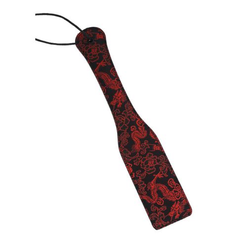 Ennek a BDSM játékhoz való lapátnak az elülső oldala hímzéssel, hátulja pedig sima. A különböző textúrák különböző érzéseket keltenek. Kényelmes csuklópánttal rendelkezik. A lapát enyhén rugalmas a lágy vagy határozott veréshez, óvatosan használja.