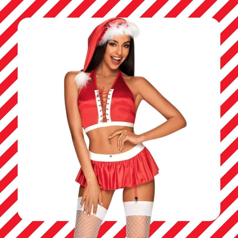 Elolvasztod magad a finom piros alsóneműk látványától? Nos, most jobb, ha vigyázol... Klasszikus karácsonyi színek, egy aranyos pomponos kalap és számos praktikus megoldás – ez az egyedi összeállítás elrabolja a szíved! A Mrs. Claus a szexepil és az intenzív piros forró kombinációja, elegáns fűzőszerű masnival és csábítóan szabadon hagyott háttal.