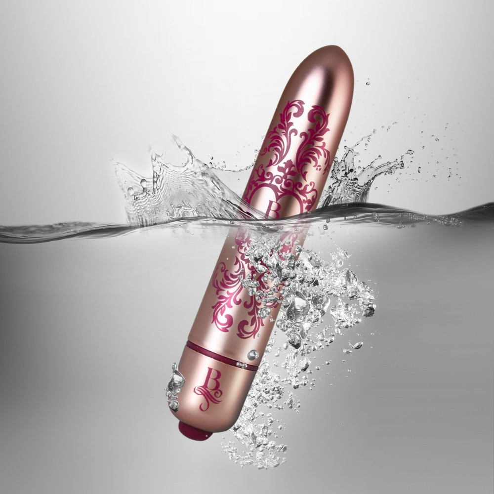 Kiváló minőségű anyagból készített, kompakt, karcsú, selymesen fénylő, 10 rezgési funkcióval rendelkező, könnyen kezelhető vízálló mini vibrátor. Élvezd a precíziós stimulációt mind a belső, mind a külső öröm érdekében ezzel a díszes, kisméretű vibrátorral. Vízálló és tökéletes a víz alapú síkosítós játékhoz, 10 erős beállításának köszönhetően pedig tökéletes a csikló-, mellbimbó- és egyéb játékhoz. A klasszikus régens stílust gyönyörűen gazdag, ragyogó színekkel és kidolgozásokkal ragadja meg, klasszikus rokokó stílusú csomagolással párosítva. A termék alkalmas még fájó izompontok, nehezen elérhető idegpontok kezelésére is.