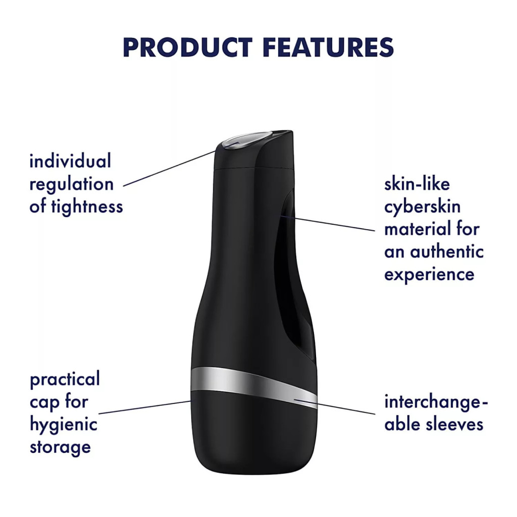 ÚJ Generációs Satisfyer Men Classic maszturbátor! A jól ismert Satisfyer Men a híres pornó legenda, Rocco Siffredi-vel került kifejlesztésre, most megújulva, orvosi minőségű szilikonból, erősebb szívó hatással lép újra színre! Innovatív, nyomásszabályzóval ellátott maszturbátor, melyet az oldalain található kékkel keretezett puhább rész megnyomásával szabadon állíthatsz, így igényednek megfelelő vákuumot hozhatsz létre, mely lehet erős, vagy gyengéd. Belül rendkívül  puha, nagyon rugalmas kialakítással, mely gyengéden öleli körbe a hímtagot. A vákuum pedig egyszerűen gombnyomásra meg is szüntethető. A nyomás elengedő gombokat a termék mindkét oldalán megtalálod, szintén a kékkel keretezett részben.