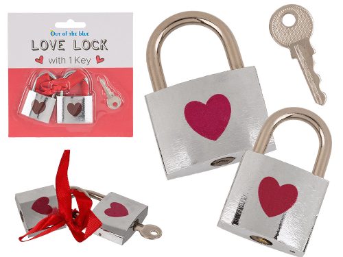 Ezüst színű, 2 db szerelmes zár piros szívvel, méretük: 3 x 4,7 cm és 3,5 x 5 cm.