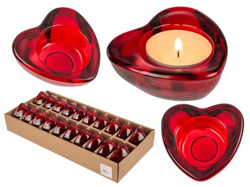 Szeretnéd igazán romantikussá varázsolni a hálószobát vagy akár a fürdőt? Ezekkel a szív alakú teamécses tartókkal sikerülni fog! Piros üveg gyertyatartó, mére: 8 x 8 cm.