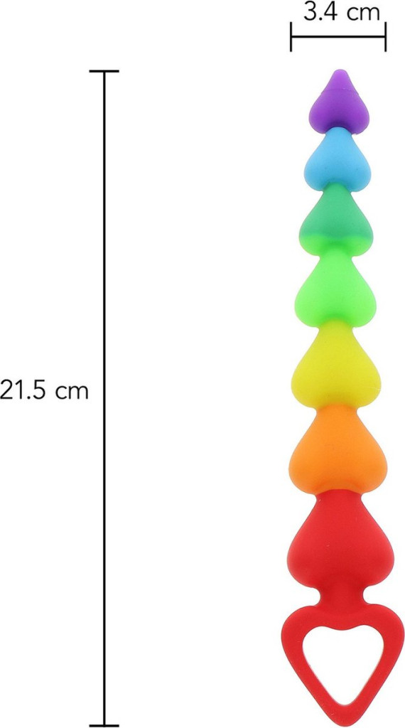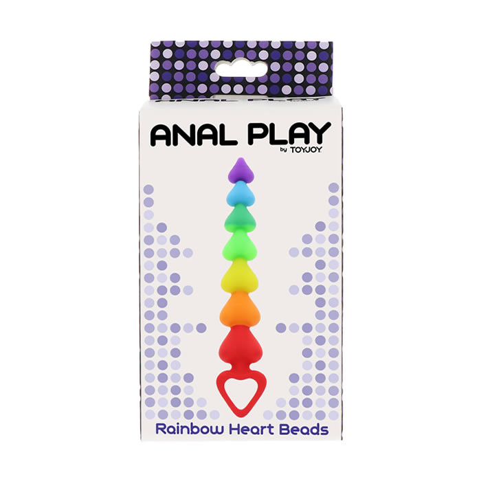 A TOYJOY Anal Play szexi szivárványos szívgyöngyei 7 szivárványszínű szív alakú gyöngyöt tartalmaznak a tökéletes meghitt szórakozás érdekében. A gyöngyök mérete fokozatosan növekszik, így lépésről lépésre haladhat, és kísérletezhet az anális stimulációval. A játék alján szív alakú hurkot találsz, amely biztosítja a biztonságos játékot és a könnyű eltávolítást. Ez a kiváló minőségű anális sor 100%-ban testbiztos szilikonból készült.